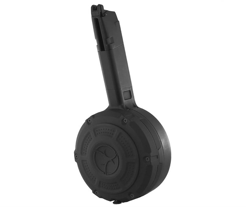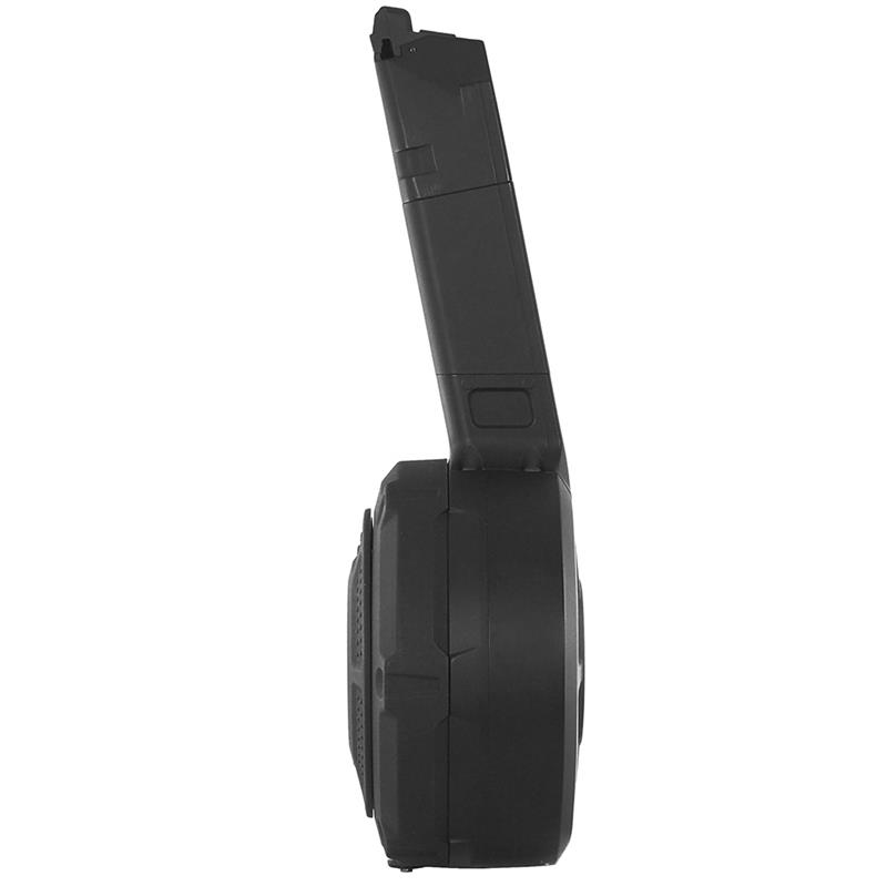 The AAP-01 Drum Magazine from Action Army gives you nearly bottomless fun on the airsoft field. This gas drum magazine holds 350 BBs, and is filled using the extra-large easy-fill cover. Instead of a winding wheel, this magazine uses a flash mag pull-string for ease of loading. A QD sling socket on the back allows you to attach a sling to protect your magazine from being accidentally dropped. The AAP-01 Drum Magazine is compatible with all TM-spec airsoft pistols that use G-series magazines.