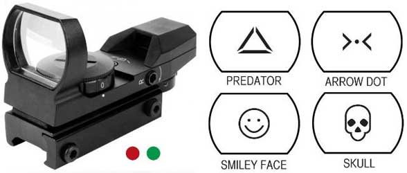 The AIM Sports Warfare Edition Panorama Red/Green Dot Sight offers 33mm reflex lens aperture provides a wide field of view, suitable for rapid-firing or moving target shooting. Multi-Reticle (4 patterns) are installed and can be changed quickly & easily, however the point of impact never changes.