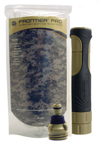 Like a Frontier Filter on Steroids, the Frontier Pro filter boasts more than double the capacity of the original Frontier Filter with out doubling the size. The ultra-light (2oz. dry) and compact (6.75in3) design is less than half the weight and takes up less than half the space of a typical “pump” type filter system. All of this performance in a package the size of a compact flashlight that fits easily into the smallest of pockets.