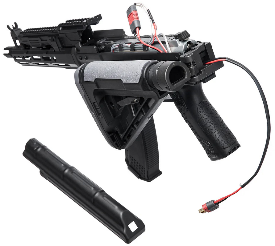 Includes: Gun, 30/130Rds Variable-Cap Windowed EMM Magazine, Metal Muzzle Brake, Deans to Mini-Tamiya Converter