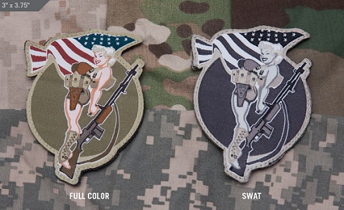 Kicking it old school with more pinup, BAR is the name of the gun for youngens out of the know. Can’t get much more patriotic and sexy! Done in woven style to capture as much detail as possible.