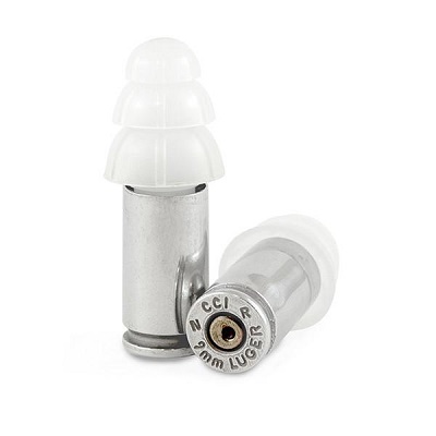 9mm Bullet Casing Ear Plugs. The Bullet Casing Earplugs provide excellent hearing protection. Includes small carrying case, fits in your pack and keeps the plugs safe and dust free. These ear plugs have a noise reduction rating of 27. Great EarPro