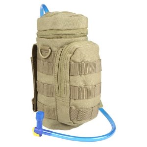 Condor Outdoor Molle Water Pouch – Holds 20oz water bottles, metal water canisters, and similar hydration bottles with two compartments, main bottle compartment is padded for insulation, complete with a grommet drain hole. The front utility compartment is great for whatever you need, water purification kit, cigarettes or whatever fits with a Zipper Closure.