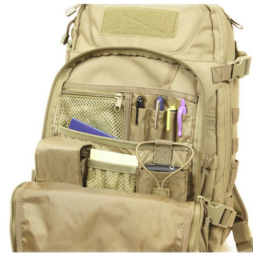 – Padded back panel with mesh reinforcement to maximize air flow.