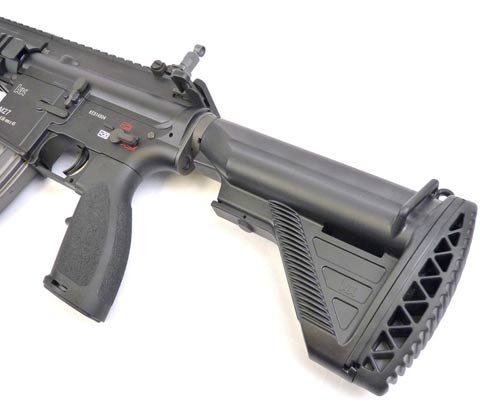 The M27 Infantry Automatic Rifle (IAR) is a lightweight, magazine-fed 5.56mm weapon used by the United States Marine Corps. It is intended to enhance an automatic rifleman’s maneuverability and displacement speed, and it is based on the HK416. The Elite Force H&K M27 IAR by VFC replicates many of the details of the real-steel firearm including the lever on the charging handle, the flip-up iron sights, and of course the fully licensed H&K Trademarks.