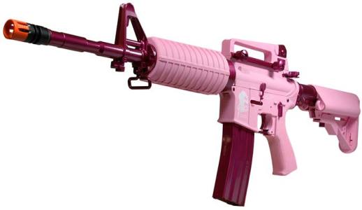 Ladies, take aim and fire with the G&G GR16 Femme Fatale AEG . This special edition assault rifle is completely metallic pink in color, and features the same fierce firepower that commands attention from competitors in the battlefield. The gun features a high torque long type motor, a high-capacity 450 Rd magazine, and a shot velocity of 360 fps (using .20g BBs). The battery of this gun is located in the foregrip, and an adjustable hop-up feature also allows greater velocity and accuracy with every shot fired. Do not miss this gun! Battery and Charger not included.