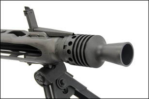 Rugged steel barrel, barrel shroud, bipod, sights, and flash hider