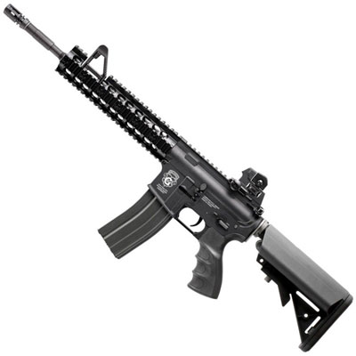 The G&G GR15 Raider Blowback, XL Rifle is a versatile electric airgun that excels at close quarter combat and longer range in the field. Air softers will be instantly impressed with the power and realistic looks of this awesome M4 styled rifle. The gun features a rail mounting system, high-capacity 450 Rd magazine, and fires at a velocity of 350 fps (using .20g BBs). A battery located in the crane style buttstock of the rifle allows airsofters the freedom to adjust stock length while keeping the battery wires protected. The G&G GR15 Raider Polymer Blowback, XL Rifle allows airsoft enthusiasts to enjoy unbeatable power and performance at an outstanding value. Take aim and fire! Battery and Charger Included!