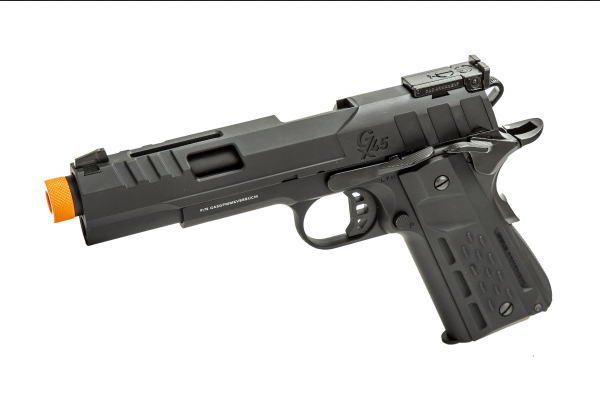 Whether its AEG’s or GBB pistols, G&G continue to prove their excellence in all fields, and the GX45 is no exception. Users familiar with a certain .45 cal sidearm will feel right at home when holding the GX45. The ergonomic pistol grip is not only comfy, but sleek in design, and the metal slide can withstand the rigors of play with no effort. Both the trigger and hammer are of a skeletonized design. Included with the pistol is a 26 round metal magazine that is incredibly gas efficient. All these features make for an incredibly well designed and balanced sidearm perfect for any situation or environment.