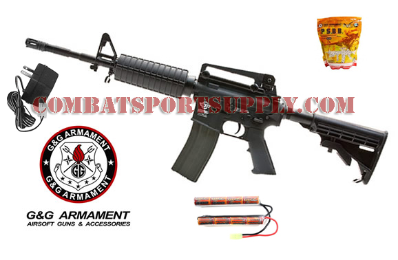 The G&G R16 Combat Machine Carbine is the ultimate rifle for close quarter combat situations. This awesome gun is a 1:1 scale replica of the standard military issue M4 rifle, and features semi/fully automatic firing, a high-capacity 450 Rd magazine, and shot velocity of 340 fps (using .20g BBs). The G&G R16 Combat Machine Carbine rifle is an excellent skirmish weapon of choice for novice and experienced airgunners alike. Experience the versatility and awesome power of this unique gun. Own your enemies and order today! Battery And Charger not included.
