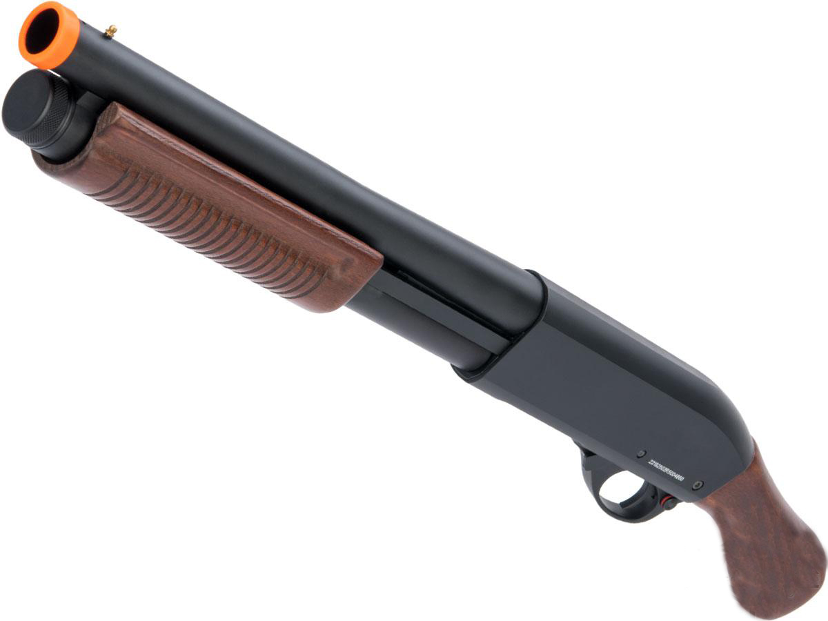 JAG Arms Sawed Off Scattergun Airsoft Shotgun with 3 or 6 Round Burst Firing Multi-Shot with Real Wood Grip and Pump. Gas Powered.