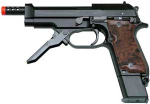 Retail package include: Pistol(1), Hi-Cap Magazine (1), Silicone Oil (1), Hop-Up adjustment wrench(1), and Airsoft BBs (50)