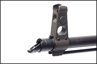 Heavy weight steel barrel, gas piston assembly, front sight, and muzzle