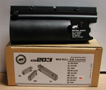 The Mad Bull M203 (Short) grenade launcher will add massive firepower and a new coolness factor to any gun with a rail system. We’ve seen this bad boy mounted to lots of different guns including a few pistols! Launches with the push of a button.