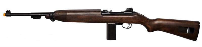 Beautiful replica of the WWII Carbine rifle used by the US Military forces, this gas powered model is made from a high quality real-wood stock, metal barrel and cocking mechanism. Blow back action is crisp and quick with every shot. Powerful with good range. The M1 is a collectible for Airsofters, re-enactors, vehicle display guys or gun enthusiasts! This model uses 6mm BBs.