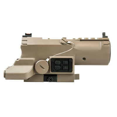 - There is also a 1.75″ long Picatinny rail for mounting optics or accessories to the top of the scope.TAN POWDER COATED ALUMINUM body.