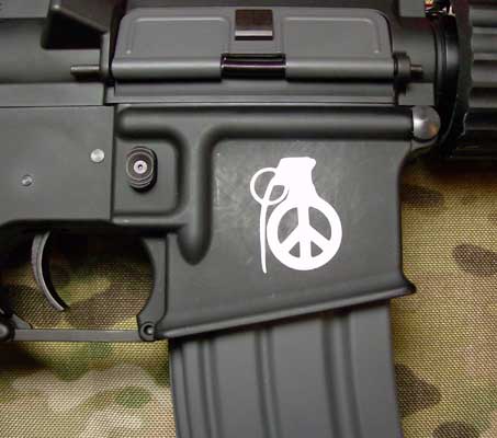 Show the world you are all about peace through superior firepower with the Peace Grenade Sticker! Many uses, but we like to put them on the body of our M4 or AR rifles.