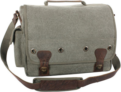 Rothco’s Trailblazer Laptop Bag is constructed with heavyweight washed canvas with leather accents. The front flap features 4 brass grommet accents with 2 antique brass closures. The bag has a large main compartment with an inside zippered pouch, padded sleeve with a strap for a laptop. Additionally the bag features 2 front pockets and 1 side snap pocket which are great for storing pens, pencils and other supplies.