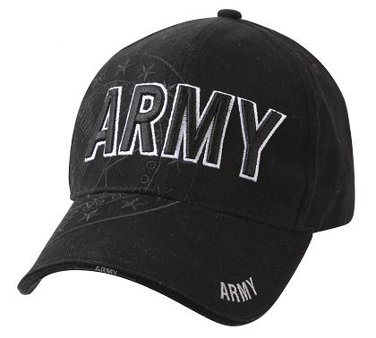 - Black Cap With Raised, Embroidered Lettering Army