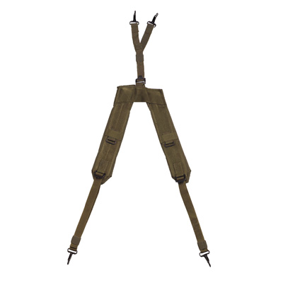 The Load Bearing Suspenders attach to the top row of grommets of the Individual Equipment Belt.