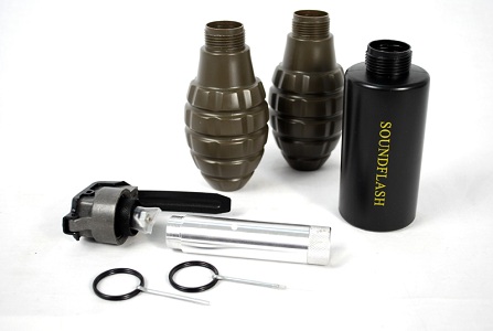 The thunder B can be attached to tactical vest or jacket. Its color and shape are very similar to a real grenade used by military and law enforcement forces. Its handling, operation and function are also similar to the original one.