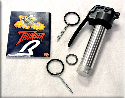Replacement Grenade Head, C02 Cylinder, and Pins for the Hakkotsu C02 Flash Bang sound effect grenade. Fits all Thunder-B shell types (Shells not included).