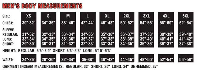 | Inseam | Short – 30″ | Regular – 32″ | Long – 34″ |