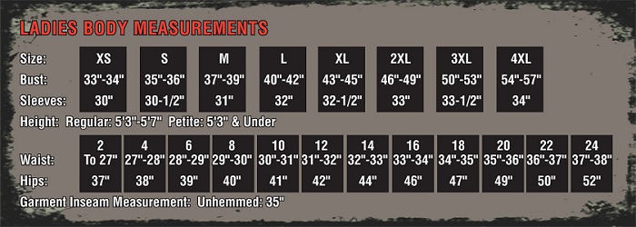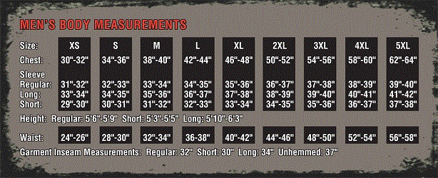 Sizes: XSmall – 4XLarge Regular & XSmall – 3XLarge Long