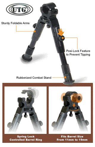 UTG New Gen Reinforced Clamp-on Bipod, 6.2″-6.7″ Center Height