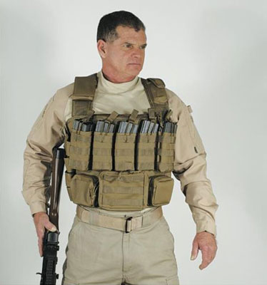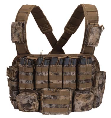 The Tactical Chest rig is a well-thought out, functional design that takes advantage of every inch of real estate on your chest. Designed with enough open-top rifle magazine pouches to hold seven M4/M16 30-round magazines, the rig also features four closed-top pistol magazine pouches, a pouch for your individual first aid kit (or IFAK), a rear document pouch, and multiple zippered accessory pouches. And if that is not enough, the MOLLE compatible webbing allows you to add additional pouches wherever you need them. When fully loaded, this chest rig can weigh quite a bit, so you will appreciate the wide, padded straps on the shoulder harness.