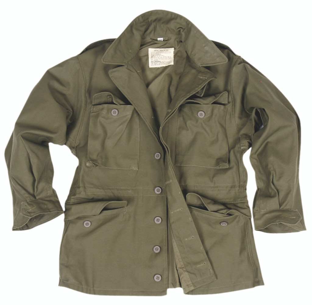 U.S. GI M43 Field Jacket WWII Reproduction is an accurate replica of the later version 43 field jacket. This jacket includes 4 front pockets, collar tab and buttons, shoulder epaulets, 6 front buttons, drawstring waist and clothes at wrist. Olive. Hand washing recommended. Order by your chest size, in inches. Material is 100 percent cotton.